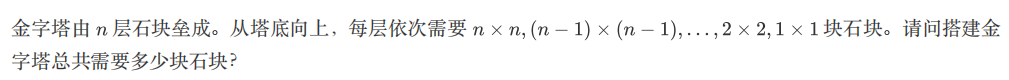 一行,一个正整数,表示搭建金字塔所需的石块数量。