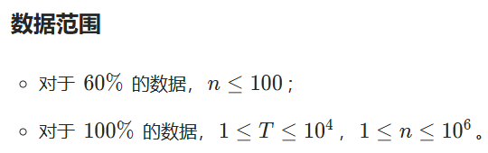 接下来T组数据,每组一行一个整数n。