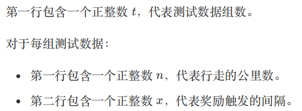 对于全部数据,保证:1≤t≤100,1≤n,x≤1000。