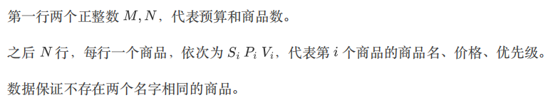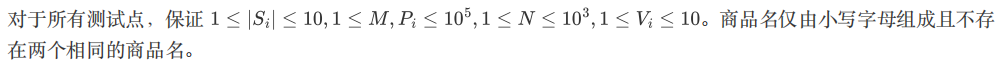 按照字典序从小到大的顺序,输出所有购买商品的商品名。