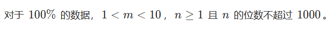 输入一行两个整数m和n,中间用空格隔开。m表示进制,n是该进制下的一个数。
