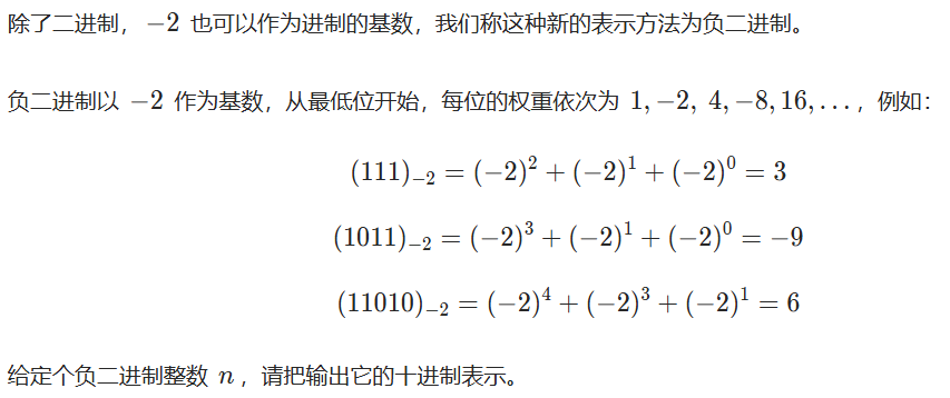 单个整数:表示N的负二进制。