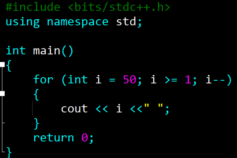 下面的代码是打印50,49,一直到1